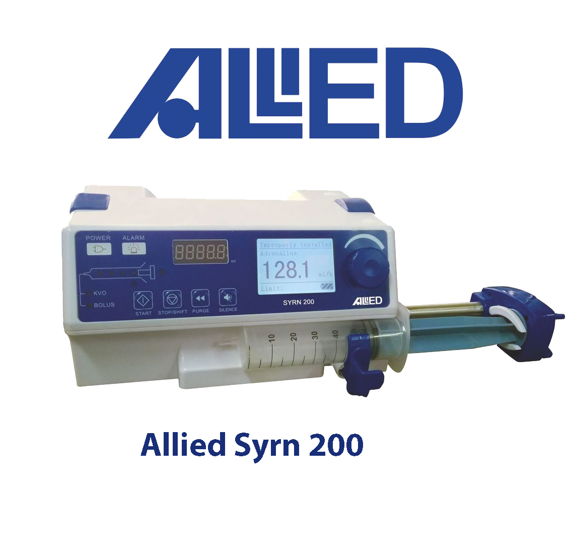 Allied Syrn 200 syringe pump has been designed to comnine high level of safety abd perfoemance with simple & reliabe operation. Syrn 200 offers comprehensive range of features making it ideal for general, critical care & neonatal infusion where accuracy is important.